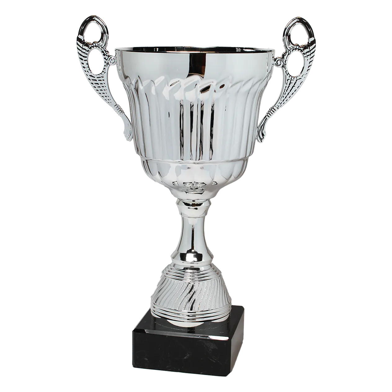 Deze prestigieuze zilveren trofee van 35 cm hoog is uitermate geschikt als wissel trofee!   De trofee heeft twee oren en is bevestigd op een zwart marmer blok. Hierop kan je een graveerplaatje laten bevestigen met jouw eigen tekst. Haagse Sportprijzen Handel monteert het graveerplaatje gratis voor u!