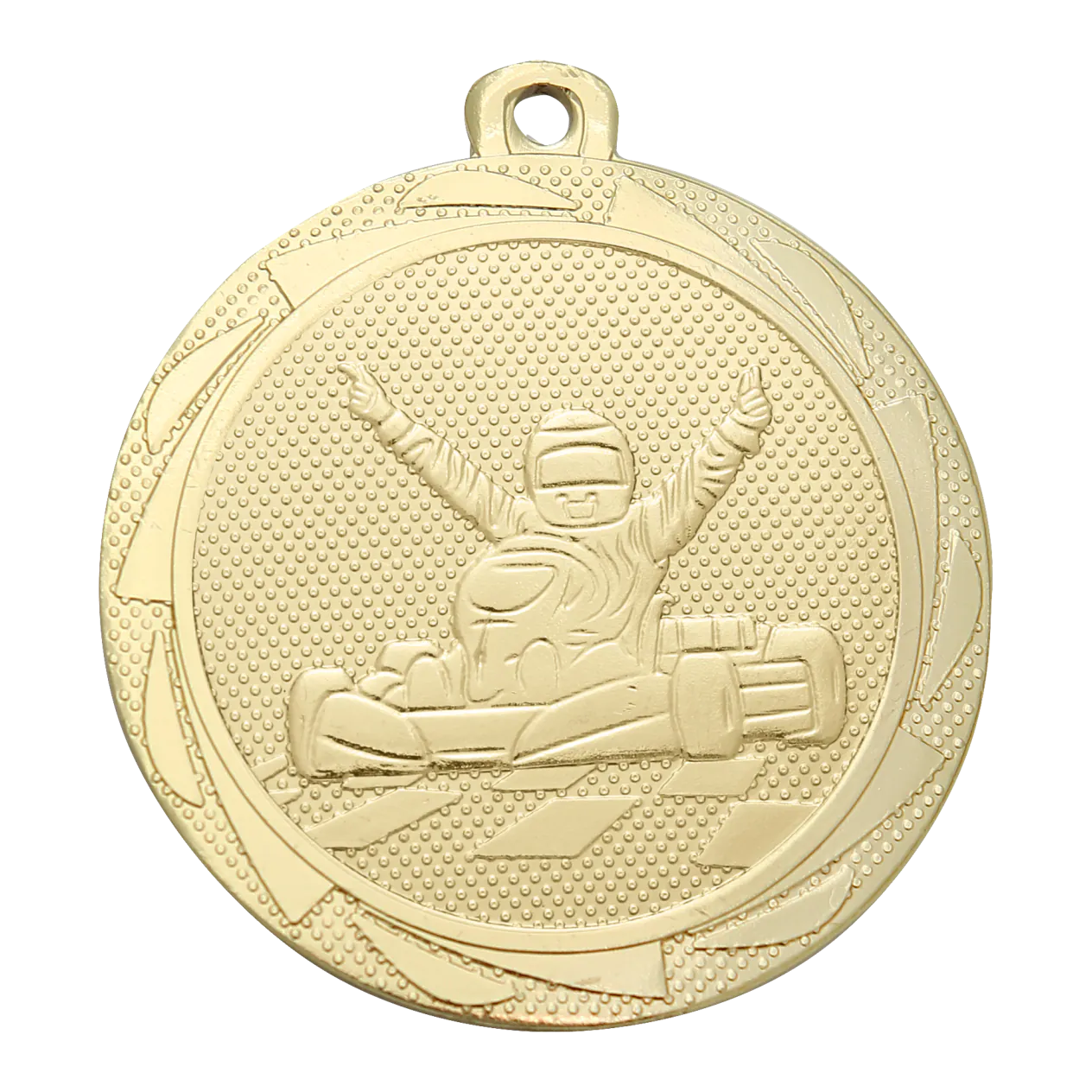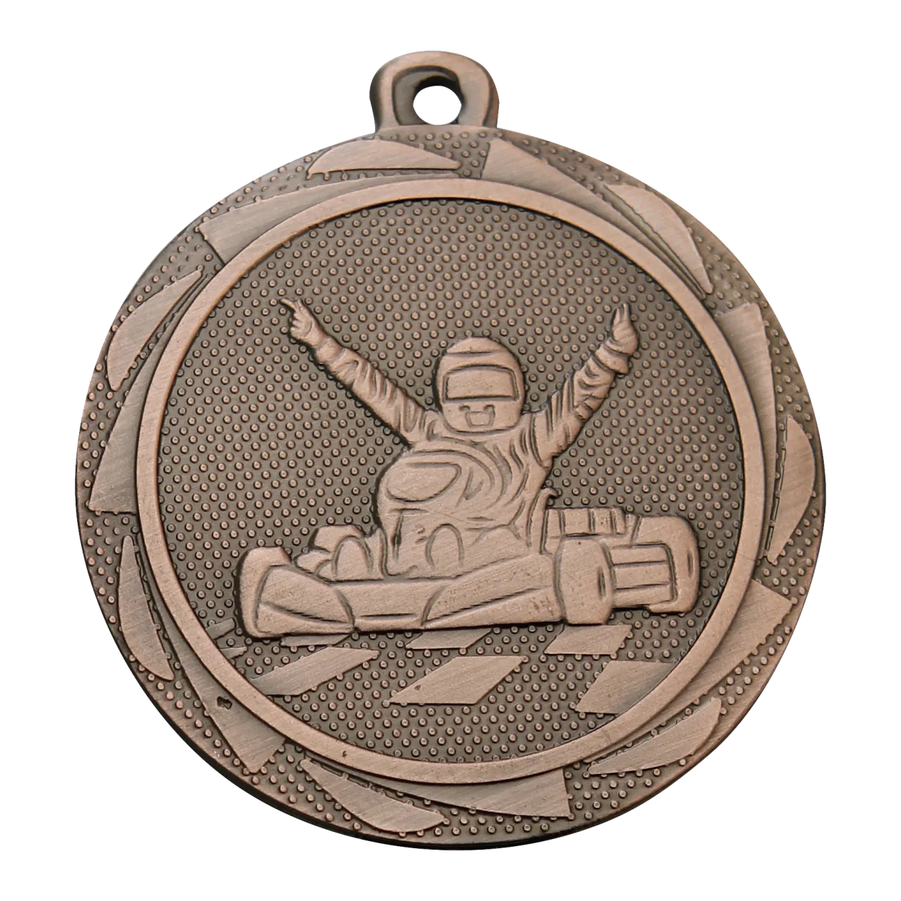 Deze kart medailles van 50 mm zijn speciaal ontworpen voor de 1e, 2e en 3e plek en verkrijgbaar in goud, zilver en brons. Voeg uw eigen tekst toe op de achterkant en selecteer een lint in een kleur naar keuze. Haagse Sportprijzen maakt de tekst op de medaille en monteert het lint gratis.